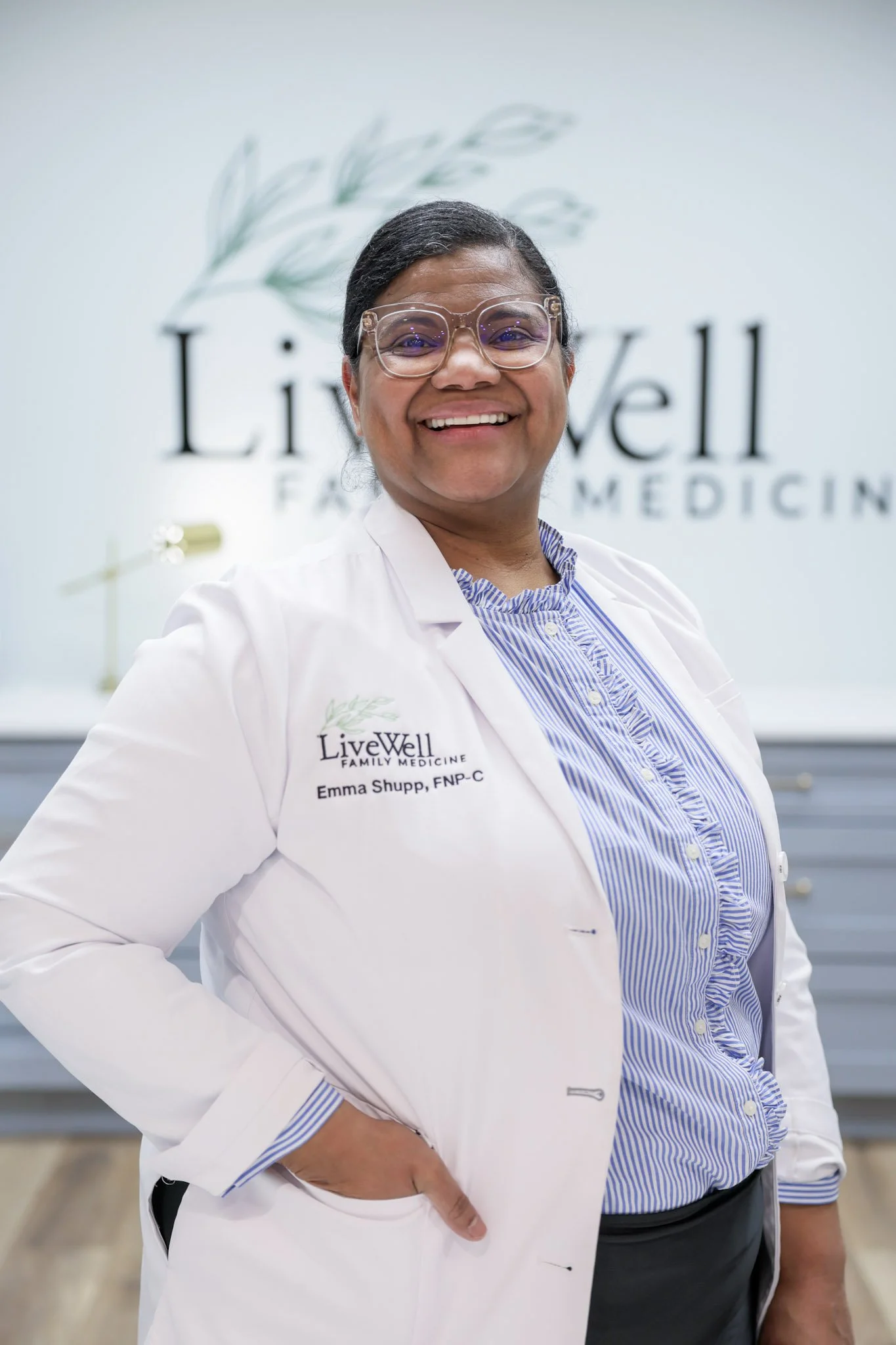 Emma Shupp, FNP, graduated with a Master of Science in Nursing from TTU in 2019. During the COVID-19 pandemic, she answered the call to care for patients in NYC and McAllen, TX, working in COVID-19 ICUs. With over 3.5 years of experience in rural health, Emma has also worked in critical care, psychiatry, long-term critical care, and public health. Fluent in Spanish, she is passionate about family medicine and building relationships with her patients and their communities. Emma founded LiveWell Family Medicine to provide compassionate, personalized care in a welcoming environment, with a dedicated team focused on helping patients LiveWell. When she is not working, she loves spending time with her husband, Justin, their two kids, Nicolas and Bela, and their labradoodle, Milo.