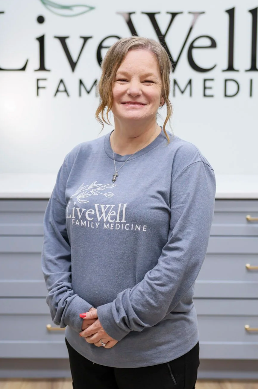 Amanda brings over 17 years of customer service experience to her role as a receptionist at LiveWell. While new to the medical field, she is excited to help patients feel welcome and ensure a smooth clinic experience. Amanda is passionate about working with the public and finds great purpose in assisting those in need. Outside of work, she enjoys spending time with her husband, daughter, and their three dogs, loves the beach, and enjoys cooking with her family and walking.